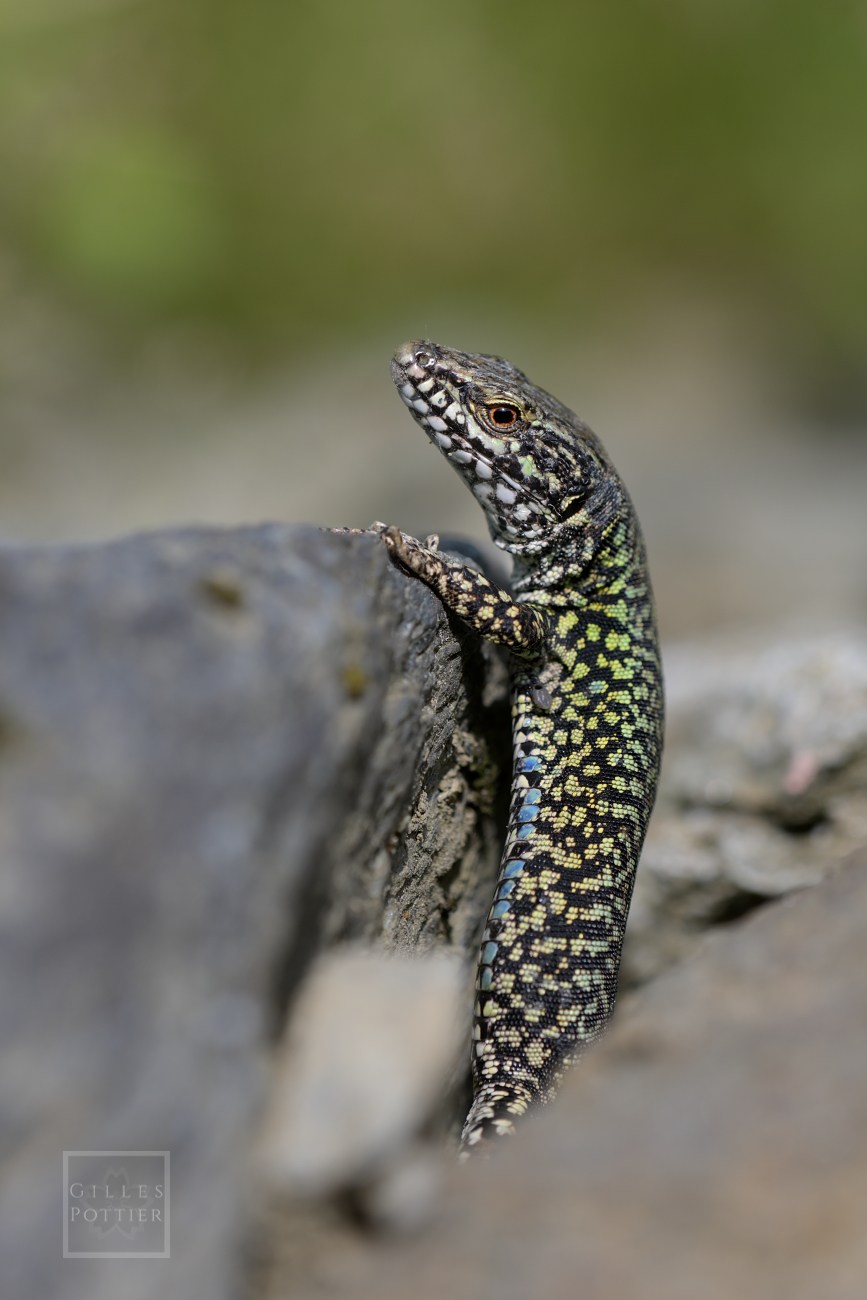 Insistons sur le fait qu'il s'agit d'une espèce d'aspect très variable (cf. galerie de photos), ayant donné lieu à la description d'une kyrielle de sous-espèces (certains auteurs en reconnaissaient 18 au début des années 1960 !). Beaucoup ont été invalidées depuis, mais de récentes investigations génétiques tendent à indiquer qu'il existe bel et bien plusieurs lignées évolutives distinctes au sein de cette espèce, appelant des travaux complémentaires qui auront probablement diverses conséquences systématiques et taxonomiques.Ce lézard est une espèce extrêmement adaptable qu'on rencontre dans une multitude de milieux, anthropisés ou non. N'importe quel endroit suffisamment ensoleillé, bien doté en proies (invertébrés variés) et correctement pourvu en refuges lui convient. Il apprécie particulièrement les substrats rocheux et leurs substituts anthropiques (béton, brique, gravats...) mais colonise également des habitats dépourvus de toute surface rocheuse, qu'ils soient secs ou humides : boisements clairiérés (y compris ripisylves inondables), haies bocagères etc., où il évolue alors préférentiellement sur des surfaces dégagées, sèches et fermes (troncs, terre nue, déchets anthropiques divers...). On le rencontre même au beau milieu de certains marais et tourbières où, très souvent, il passera pour un Lézard vivipare (Zootoca vivipara) aux yeux d'observateurs peu... regardants. Toutefois, cette remarquable plasticité écologique vaut surtout pour les secteurs de basse altitude (en-dessous de 1000 m / 1500 m dirons-nous), car l'espèce se fait nettement plus spécialisée en moyenne et haute montagne. Au-dessus de 1500 m ou 2000 m, le Lézard des murailles ne se rencontre plus que dans certains habitats particulièrement drainés et ensoleillés (éboulis et cordons morainiques bien exposés, crêtes fissurées, ruines, digues de barrages etc.) où, localement, il cohabite avec Iberolacerta bonnali, I. aranica ou I. aurelioi.