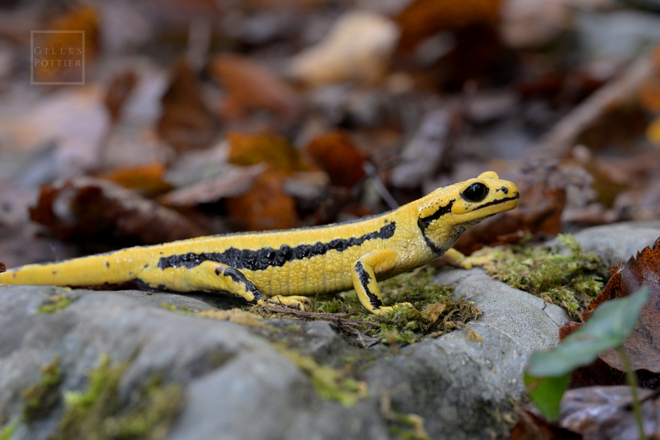 C’est un des plus grands amphibiens Urodèles d’Europe, les adultes atteignant 15 cm à 20 cm de longueur totale. L'épiderme, d'aspect plutôt lisse et luisant par temps humide, est parsemé de glandes pouvant secréter par leurs pores -en cas d'agression- un "latex" toxique de couleur blanche qui rebute divers prédateurs (mais pas la Couleuvre helvétique...). La paire de glandes parotoïdes, particulièrement saillantes, est notamment bien visible à l'arrière du crâne. La base des flancs, elle, est plutôt chagrinée-parcheminée. La robe est typiquement noire et jaune (très rarement noire et rougeâtre) avec une disposition des taches jaunes extrêmement variable d'un individu à l'autre, qui sont tous uniques de ce point de vue et peuvent donc être identifiés sur photo.